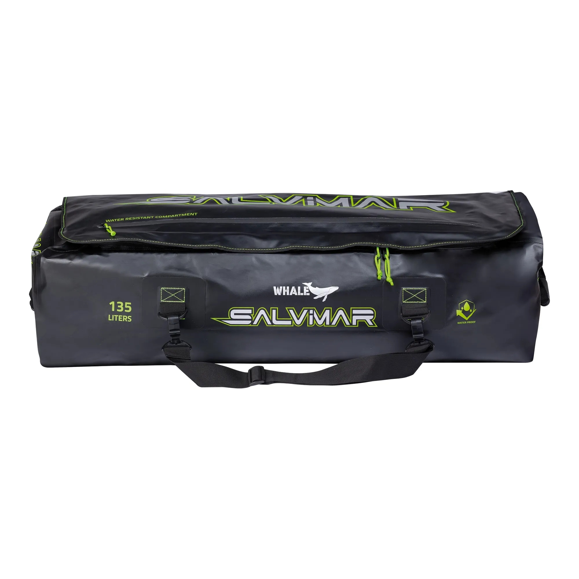 Borsone porta attrezzatura con capienza da 135 litri. Realizzato in robusto PVC Tarpaulin saldato ad alta frequenza, giunture stagne. Dotato di valvola per consentire lo scarico dell’acqua dopo aver lavato l’attrezzatura all’interno della borsa. Waterproof, impedisce la fuoriuscita di acqua durante il trasporto. Due maniglie laterali e spallacci a tracolla regolabili e rimovibili. Presente un ampio scomparto a rete interno ed una tasca esterna sulla parte superiore con cerniera resistente all’acqua.