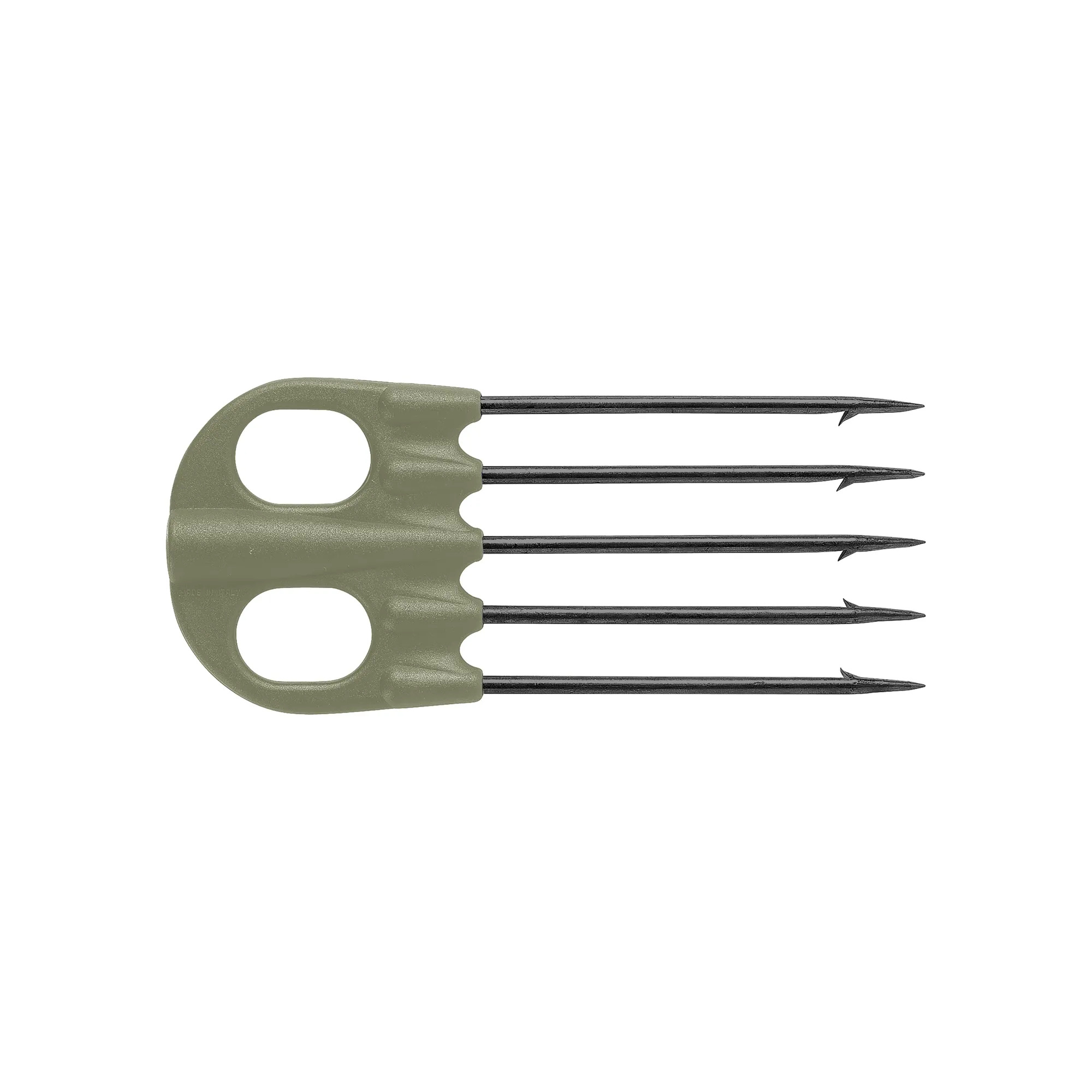 Realizzata con nylon resistente, questa fiocina presenta quattro punte originali Mustad, garantendo una maggiore efficacia nella trattenuta del pesce. Grazie alla sua costruzione robusta e alla qualità delle punte Mustad, assicura una presa sicura e affidabile sulla preda.