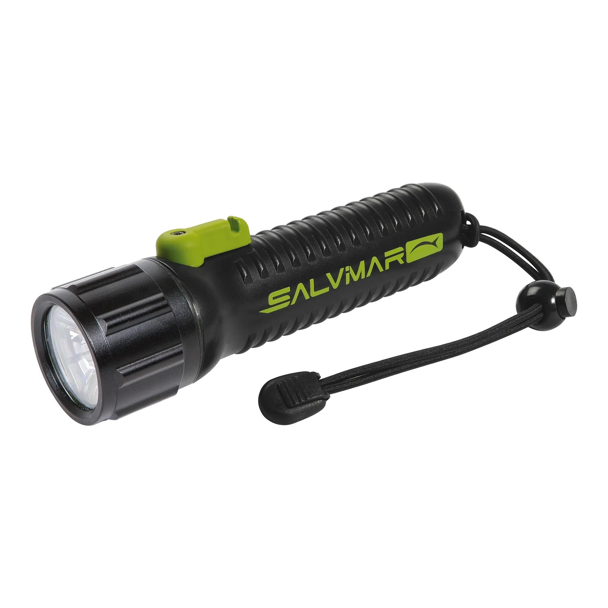 La torcia è progettata per la pesca subacquea, offrendo potenza e compattezza. Il corpo in policarbonato assicura robustezza, mentre la ghiera di dissipazione in alluminio mantiene la temperatura interna controllata. Utilizza un singolo LED CREE Q5 da 3 watt per una luminosità massima di 340 lumen, con un fascio concentrato a temperatura colore di 6000K. L'alimentazione avviene tramite 4 batterie AA standard o ricaricabili (2700mAh), garantendo un'autonomia di circa 5 ore o fino a 17 ore con accensioni intermittenti. È subacquea fino a 50 metri e si accende tramite un meccanismo magnetico, garantendo una maggiore comodità d'uso.