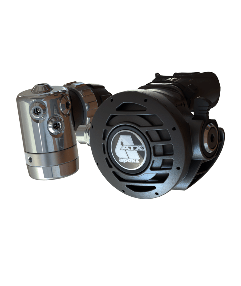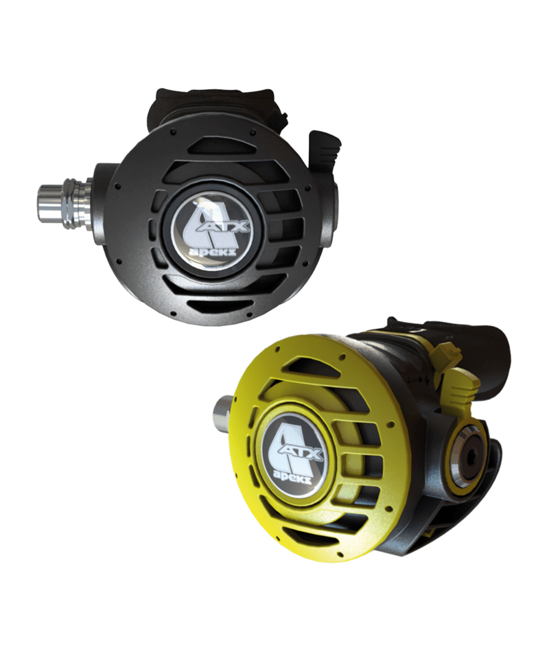 Secondo stadio bilanciato pneumaticamente che si traduce in una respirazione regolare e facile. Grande pulsante di scarico sull'ATX, facile da usare anche con guanti spessi. Controllo Venturi integrato fornisce un aumento delle prestazioni in profondità, prevenendo il flusso libero indesiderato in superficie. Valvola di scarico estremamente efficiente migliora le prestazioni di respirazione dell'erogatore. Boccaglio Comfo-bite™ elimina virtualmente l'affaticamento della mascella. Scambiatore di calore (brevettato) che circonda il meccanismo della valvola, dissipa il freddo causato dall'espansione del gas mentre aspira il calore dell'acqua ambiente. Offre un T di scarico compatto e integrato.
