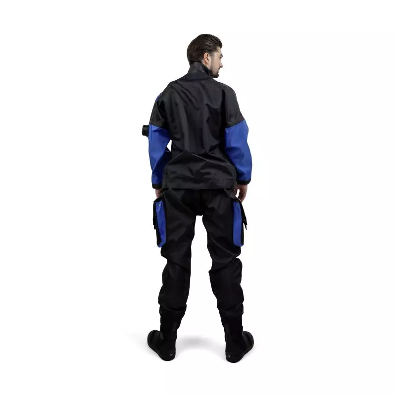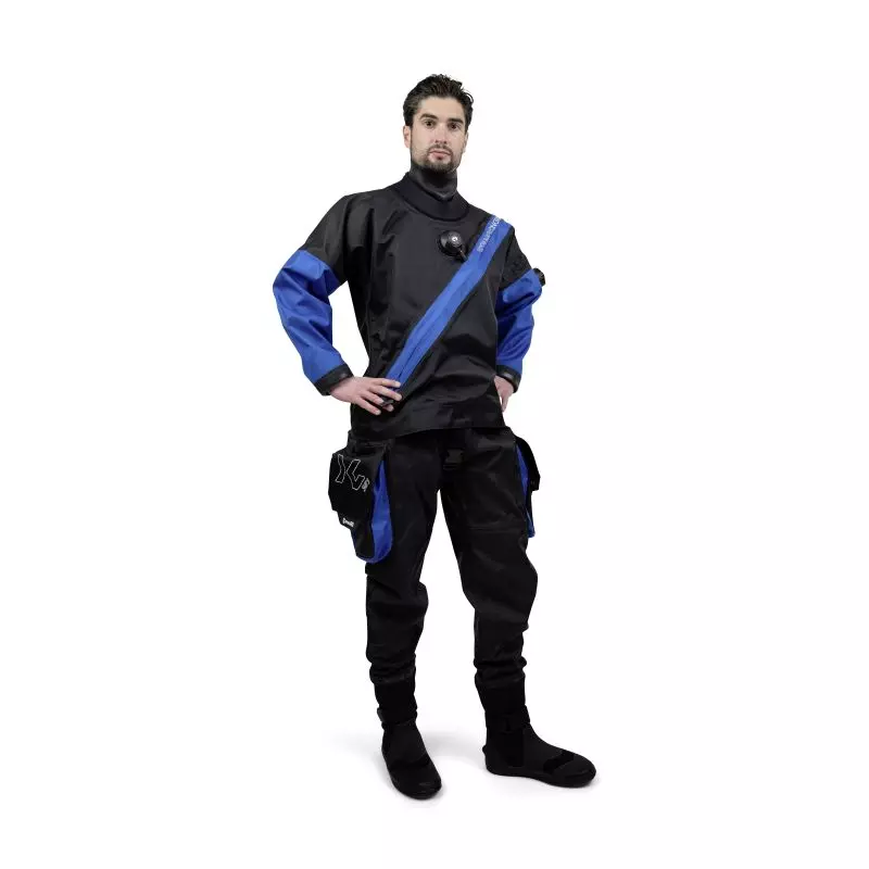 I calzari della muta stagna sono realizzati in neoprene spesso 3 mm, a doppio strato incrociato. Sono dotati di fasce alla caviglia, di fermi per i cinghioli delle pinne e di una suola protettiva, ma molto flessibile, per garantire il massimo comfort. Le due tasche fisse sulle gambe offrono uno spazio di stoccaggio sufficiente e sono dotate di due cordini elastici interni pensati per fissare in sicurezza il contenuto. Le valvole di ingresso e di uscita ad alte prestazioni completano il tutto. Inoltre, è possibile modificare la valvola di ingresso per aggiungere un attacco per la biancheria intima riscaldata elettricamente.