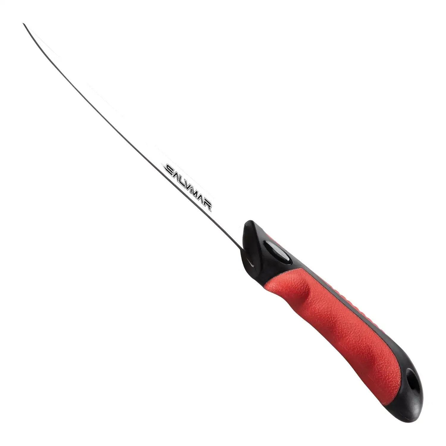 Il coltello presenta una lama realizzata in acciaio 3Cr13, noto per la sua resistenza e durabilità. Con una lunghezza di 17 cm, la lama è progettata con uno spessore differenziato, più spesso alla base (2mm) e più sottile verso la punta (1mm), conferendo flessibilità e precisione durante l'operazione di sfilettatura. La lunghezza totale del coltello, inclusa la lama e il manico, è di 31,5 cm. Grazie alla sua costruzione e alle caratteristiche della lama, questo coltello è ideale per sfilettare le catture in modo efficiente e preciso.